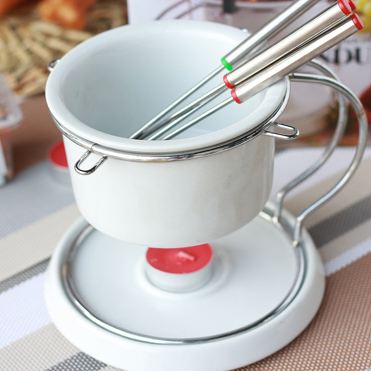 [配套说明]:奶酪火锅炉1套带彩盒+5个扇形拼盘+不锈钢叉子4支+蜡烛2只