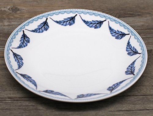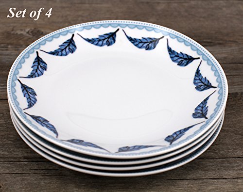 (Leadex)/Kitchen Dining/Tableware/DIRECT FROM USA/Leadex Porcelain 8"Salad Plate/Dessert Plate,Set Of 4, Rustic Blue Leaves Design ,Gift Packing