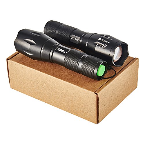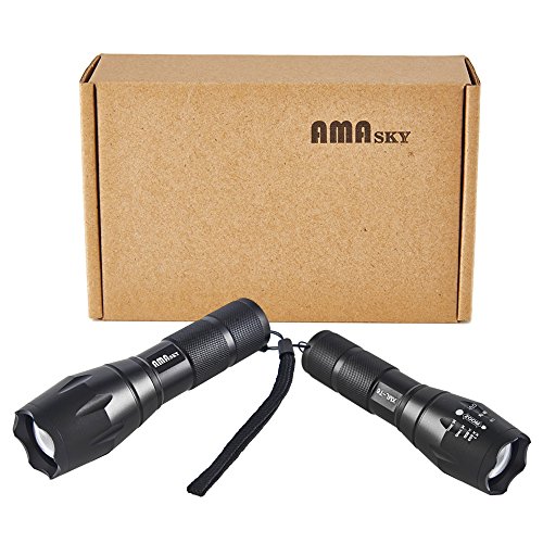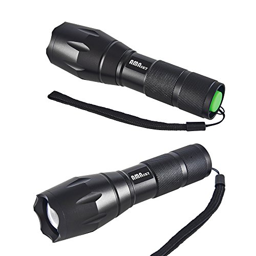 AMASKY XLM-T6 Zoomable Water Resistant Bright LED Flashlight with 1600LM Torch Adjustable for OutdoorBottom Click (2 in pack)