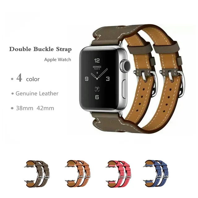 | [해외]정품 가죽 더블 버클 커프스 밴드 애플 시계 헤르메스 38 미리메터 42 미리메터 팔찌 가죽 스트랩 손목 남성 스마트 시계 스트랩 |