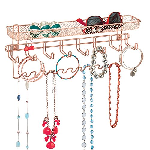 InterDesign Classico Fashion Jewelry Organizer with Storage Hooks for Rings, Earrings, Bracelets, Necklaces - Wall Mount, Rose Gold