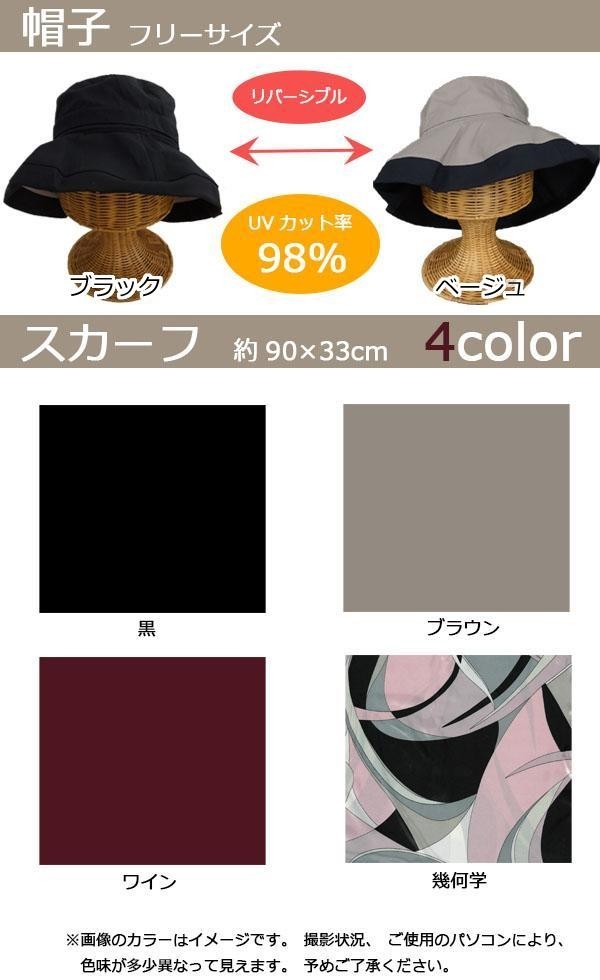 | 仕様 | 【UVカット率】 帽子98% スカーフ84%以上 ※色により異なる 【お手入れ方法】 洗濯可 |