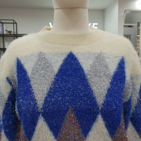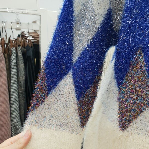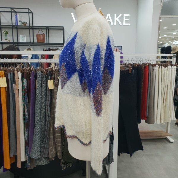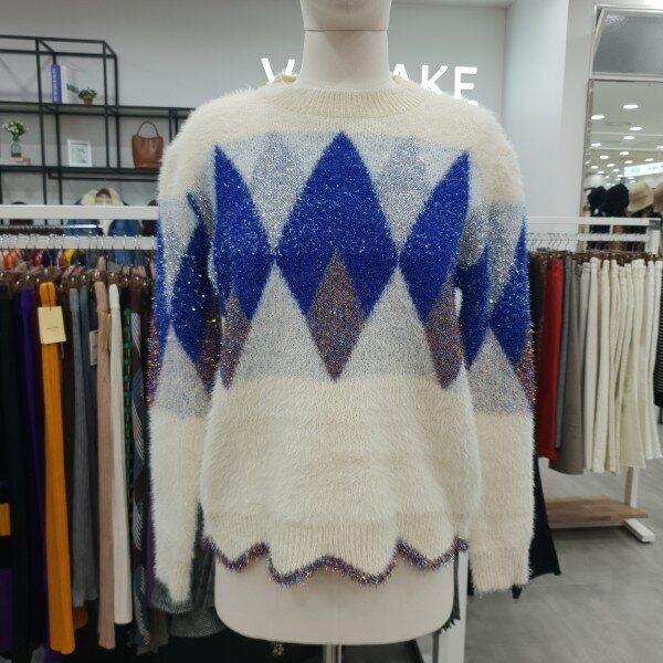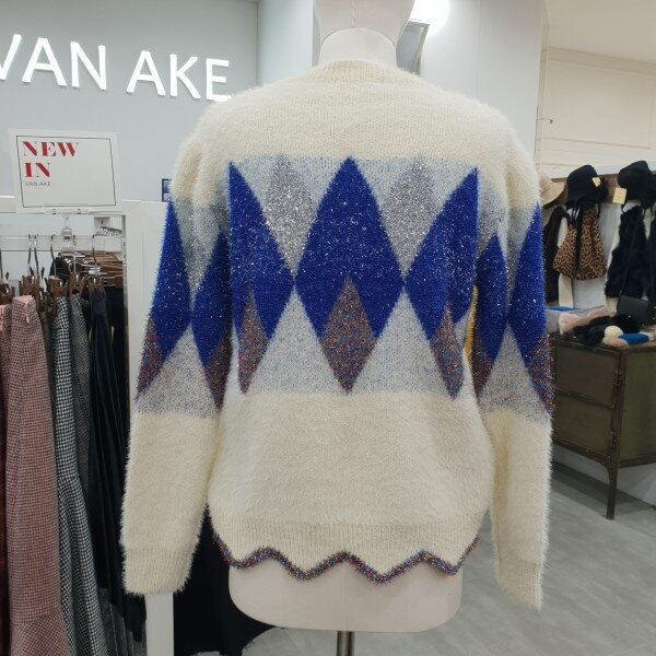 은은한 펄감의 니트아가일 패턴이 여성스럽고 팬츠나 스커트 멀티코디하기좋은 스타일