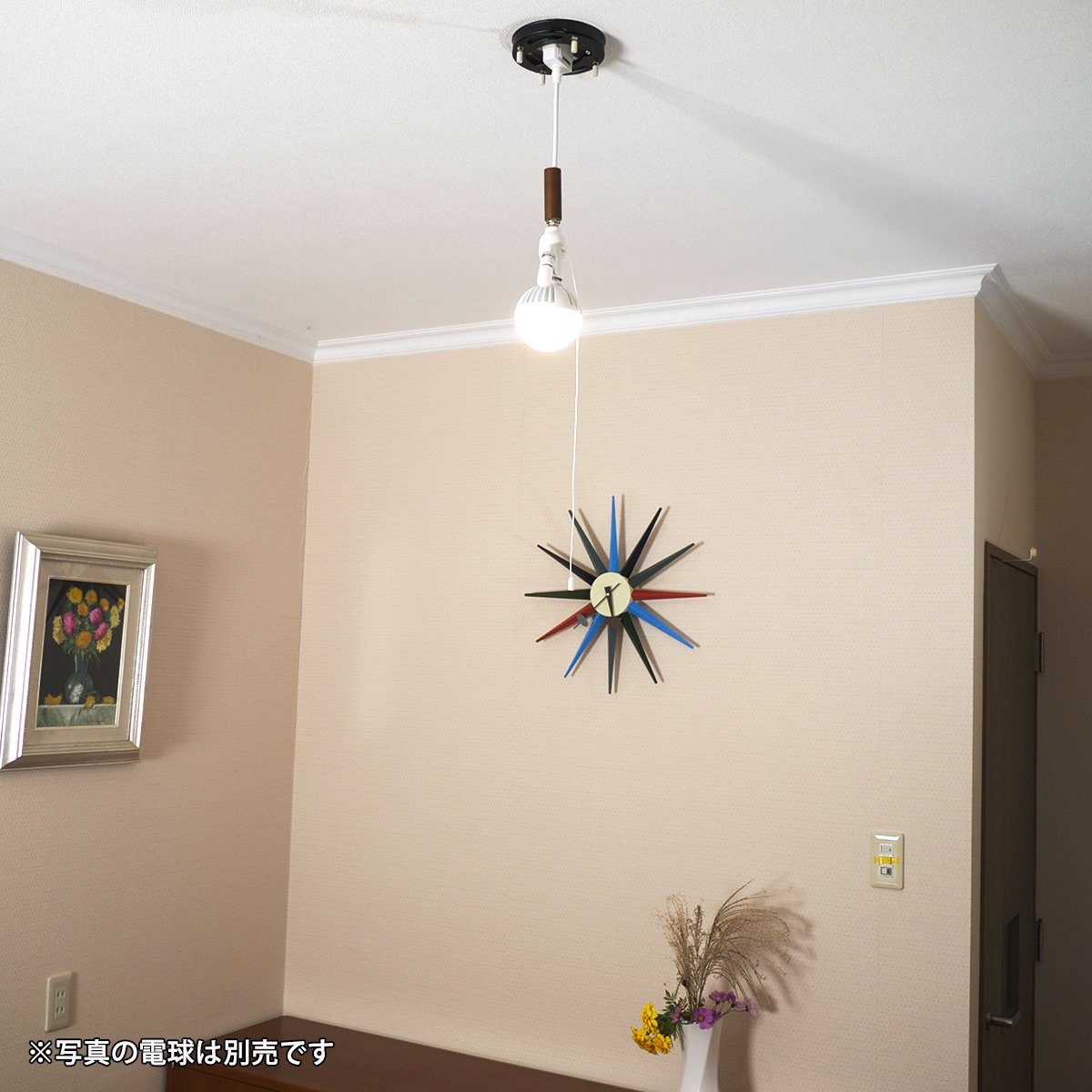 A pendant light socket with a simple, compact design that is exactly right for a small space.