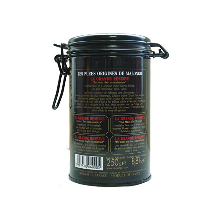 원본상품명: Malongo マロンゴ レギュラ コヒ (粉) ラグランドレゼルヴ La Grande Reserve 細挽き 密封プルトップ缶 250g