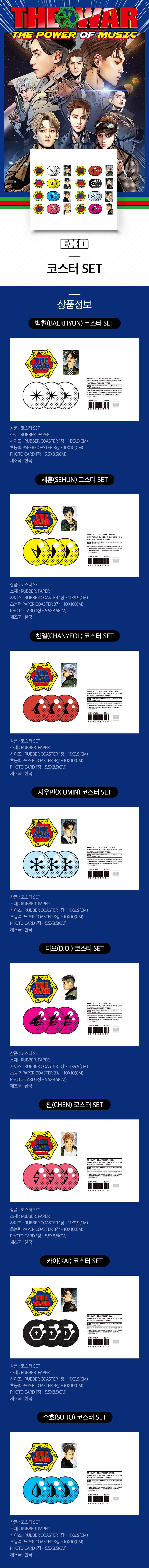 SM Town EXO THE WAR Repackage The Power Of Music Official Coaster Set