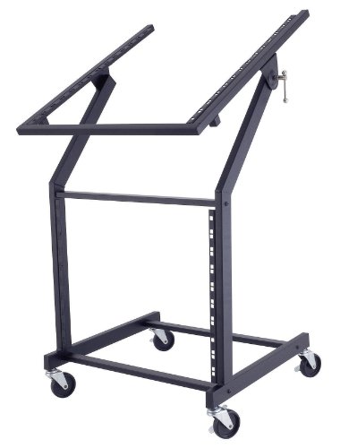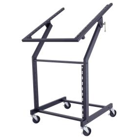 Heavy duty rolling rack with locking wheels.Fixed multi-location vertical mounts and a horizontal mounting rack.