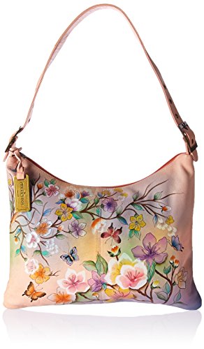 -. Title : Anuschka Handpainted Leather Slim Large Hobo-Japanese Garden