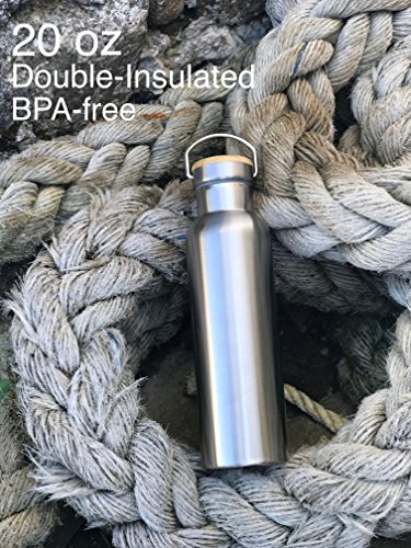 H.i. LLC, 300ml (20oz) Double-Insulated Water Bottle/Thermos with Easy Grip Bamboo Lid