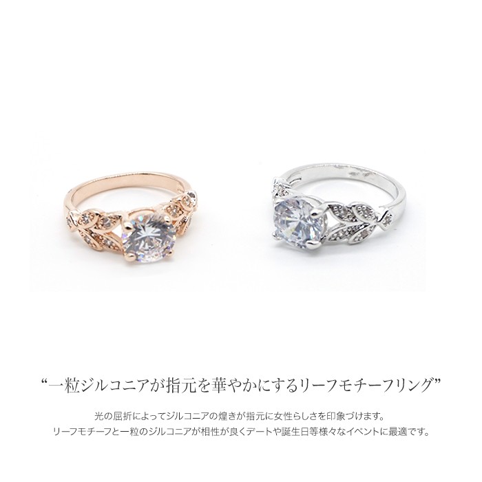 リーフモチーフと一粒のジルコニアが相性が良くデートや誕生日等様々なイベントに最適です。