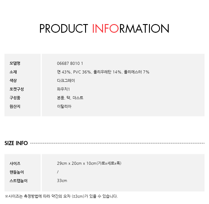 사이즈사이즈 : 29cm x 20cm x 10cm(가로x세로x폭)