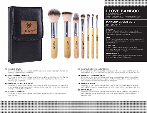 SHANY has created a unique collection of brushes with Natural Hallow bamboo handles and the finest microfiber hair Grade “A+” laser injected hair, which is assembled by hand . The brushes are designed to be washable and safe on the use of brush cleaner. Seven useful brushes all in a beautiful self-seal box with magnetic lid. Extra short handles provide an easy storage, easy application and on the go projects. Two toned microfiber hairs with approximate 0.05mm or less in thickness are patented new generation of SHANY bamboo brushes. The hair thickness is essential when working with powders and eye shadows. The thinner the hair, the easier it is to use. The SHANY Bamboo set is one of a kind in its class, which is highly affordable and is proudly designed with the team of Makeup artists in U.S.A. The closed case size is 5.5” x 3” x1”. the average brush height is 4.5” tall. In this set you will find Powder brush, buffer bronzer brush, rounded foundation brush, flat all over Eye shadow brush, eye brow brush, mini precious eye counter brush, rounded concealer brush.Feature