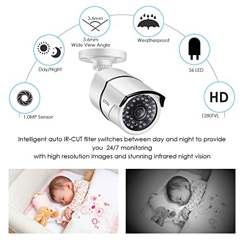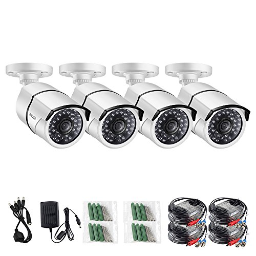 ZOSI 4 Pack AHD 1280TVL(720P) Weatherproof Security Bullet Cameras Kit,Night Vision Up to 100FT(30M)
