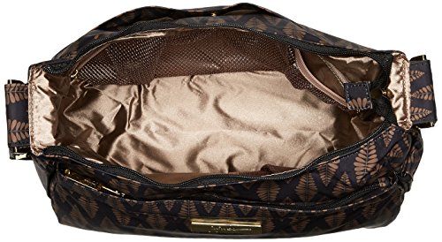 The Ju-Ju-Be Legacy Collection HoboBe Purse Diaper Bag is chic, smart and functional with added innovation and versatility. Packs up great for baby, the HoboBe Diaper Bag looks like a fashionable purse but has all the same features as an ordinary diaper bag. When you’re ready, take out the included memory foam changing pad for a full-fledged purse. How’s that for flexible and fun? Be yourself and more with the HoboBe. The inner lining is protected with Agion natural antimicrobial treatment, which inhibits and reduces the growth of odor-causing bacteria, mold and mildew. The outer fabric is treated with Teflon fabric protector so you can repel stains and keep your Hobo Be clean. The front "mommy" zippered pocket is large enough for smartphones, wallets, keys and other personal items. The main zipper pocket is large enough for diapers, wipes, soft toys and other items for quick trips. The back pocket is perfect for magazines or books. (2) bottle pockets are located on either side of the bag and insulated to keep your items hot or cold. The adjustable memory foam shoulder strap has textured fabric underneath to prevent the bag from sliding off your shoulder. This bag is machine washable and measures 13.5-inches by 9.5-inches by 5.5-inches in size. The Versailles print is black and brown with tan lining. The print is accented by gold, metal hardware. All Ju-Ju-Be Bags come with a Lifetime Limited Warranty against manufacturing defects when purchased from an Authorized Ju-Ju-Be Dealer. Authorized Dealers can be found in the images. Founded in 2005, Ju-Ju-Be is a Southern California company that uses science, style, and attitude to create diaper bags, purses and other fashionable accessories. Ju-Ju-Be assimilated the most advanced technology possible to create a stylish and intelligent product line that's unrivaled in the industry.Feature