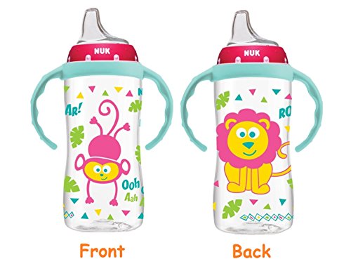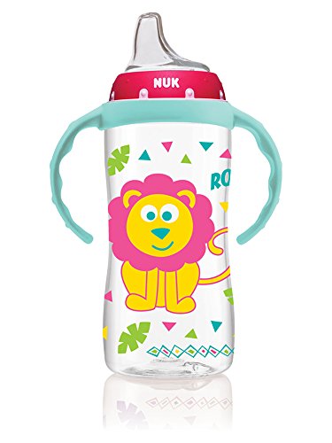 -. Binding : Baby Product -. Brand : NUK -. Department : baby-girls -. EAN : 0885131141217 -. Feature : Helps make the transition from bottle to cup easier / Spill-proof, soft spout is designed to be gentle on gums while teaching baby to drink from a spout / Air vent helps reduce swallowing air / Easy-grip, anti-slip handles are easy for baby to hold and removable as baby ages / Flows easily when sipped; Designed for ages 6-months and up -. Label : NUK -. Manufacturer : NUK -. Model : 14121 -. MPN : 14121 -. PackageQuantity : 1 -. PartNumber : 14121 -. ProductGroup : Baby Product -. ProductTypeName : BABY_PRODUCT -. Publisher : NUK -. ReleaseDate : 2015-07-16 -. Studio : NUK -. Title : NUK Jungle Designs Large Learner Cup in Girl Patterns, 10-Ounce -. UPC : 885131141217