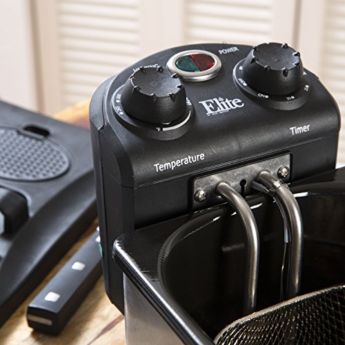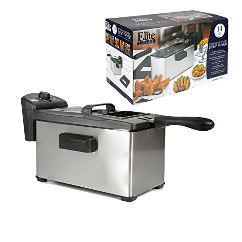 Enjoy all of your favorite foods with the Elite Gourmet 14-Cup Deep Fryer. With its beautiful brushed stainless steel exterior, this deep fryer is an absolute necessity to any modern home kitchen. It features a thermostat knob that heats up to 375°F so you can cook anything from French fries to fried zucchini or from buffalo wings to onion rings. It's 3.5-quart. or 14-Cup size allows you to cook up to 2.3 lbs. of food per batch. Enamel non-stick removable inner container that is full immersible. Vented cool-touch lid for added safety. Separate power and ready indicator lights to let you know when oil is ready. The easy to use timer lets you set the cook time for up to 30 minutes so that you no longer need to hover and wait or worry about over-frying foods. Also includes a replaceable filter to eliminate unwanted grease and oil odors.Feature
