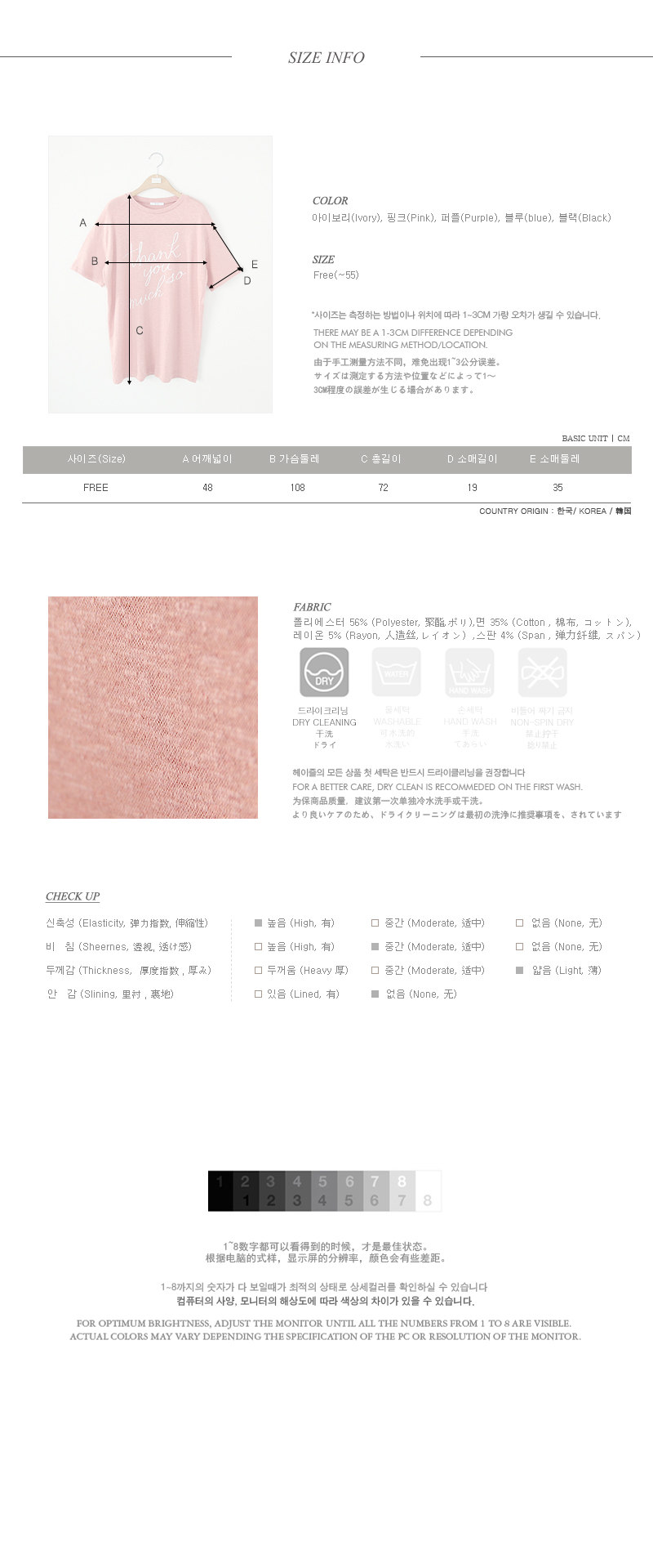 레터링으로 다양한룩에 심플하게~ 크리미한 컬러감의 루즈핏티셔츠에요! 비침이 있는 정도의 슬라브 소재감으로 여름시즌까지 쭉~ 즐길 수 있구요 심플한 루즈핏으로 다양한 룩에 레이어드로 활용하기 좋은 기본티셔츠에요! 프론트에는 심플한 레터링이 포인트되며 크리미한 컬러감으로 구성되어 다양한 룩에 이지한 포인트를 준답니다~ 유행없이 오랫동안 소장하기 좋아 데일리하게 입기좋은 아이템이랍니다^^
