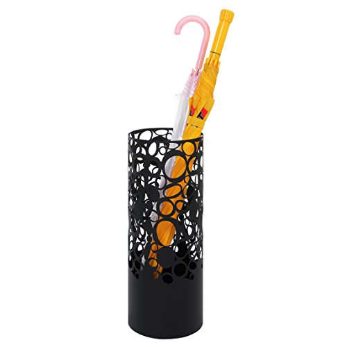 -. Title : SONGMICS Umbrella Stand Rack Free Standing for Canes/Walking Sticks, with 2 Hooks, Round Metal Black ULUC42B