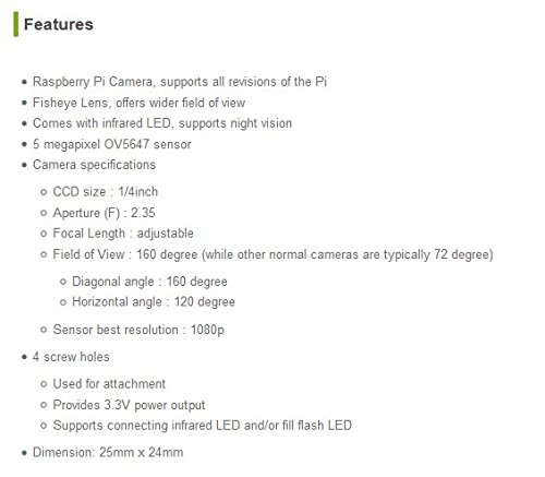 RPi Camera (H)-- Supports Raspberry Pi model B/B+ A+ Pi 3 2 1