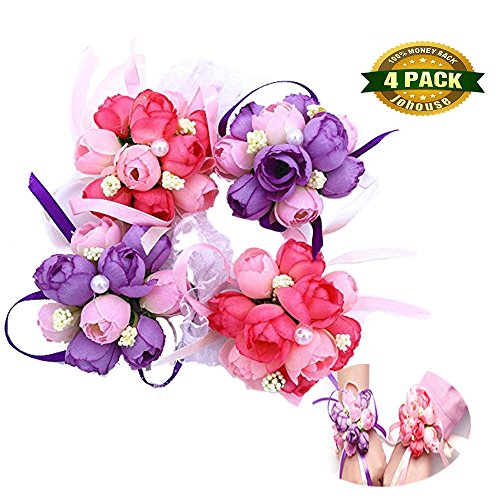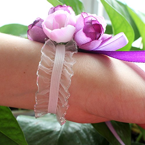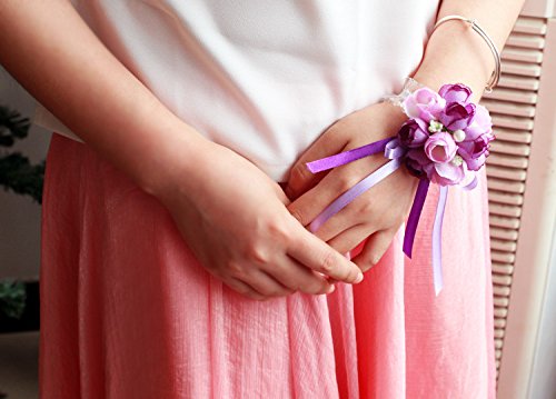 Wrist Corsage,Girl Bridesmaid Wedding Wrist Corsage Party Prom Hand Flower for Party Engagement Decor Birthday Party, Purple,Pink,4 PCS