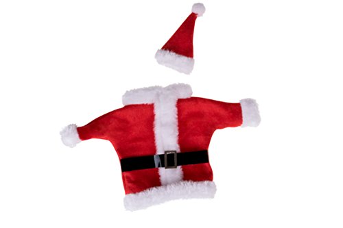 Santa Coat and Hat Wine Bottle Cover | For All Standard 750ml Wine Bottles | Quick & Easy Installation | Red & White Christmas Themed Santa Suit and Hat Holiday Decor Theme | Measures 8.5" x 3.25"