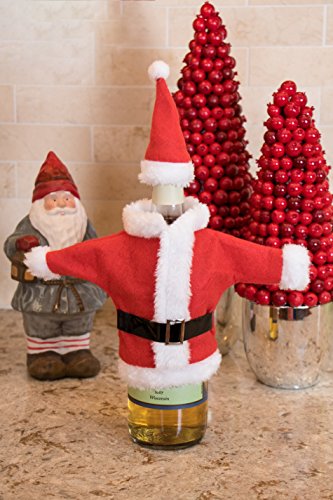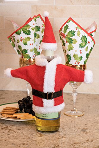GREAT HOLIDAY DESIGN: This Christmas wine bottle cover features a great miniature Santa Claus' outfit including his white-trimmed jacket, his signature black belt, and his classic red and white hat.