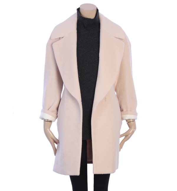 NICE CLAUP, 심플한 빅카라로 포인트를 준 여성스러운 디자인의 모직코트입니다