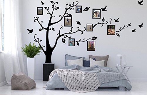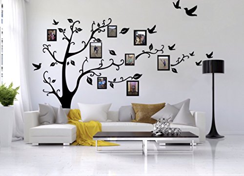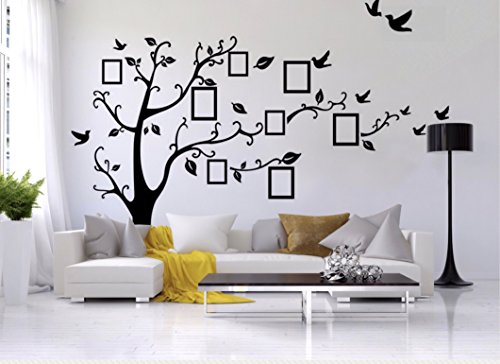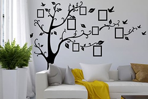 -. Binding : Kitchen -. Brand : Chaylor & Mads -. Color : Black -. EAN : 0692264324130 -. Feature : Size: Approximately 8ft 2in (Lenght) x 6ft 7in (Height) / Includes 8 frame decals. Frames can be placed horizontally or vertically and can fit 5x7 & 4x6 photos. / Have the option of positioning decal with branches to the right or with branches even on both sides of the tree. / Words, frames, birds, leaves and branches are separate so you can choose how to position the decal. / Color: Black -. IsAutographed : 0 -. Label : Aiwall -. Manufacturer : Aiwall -. ProductGroup : Home -. ProductTypeName : HOME -. Publisher : Aiwall -. Size : Large -. Studio : Aiwall -. Title : Family Tree Wall Decal Sticker Large with Decal Picture Frames -. UPC : 692264324130