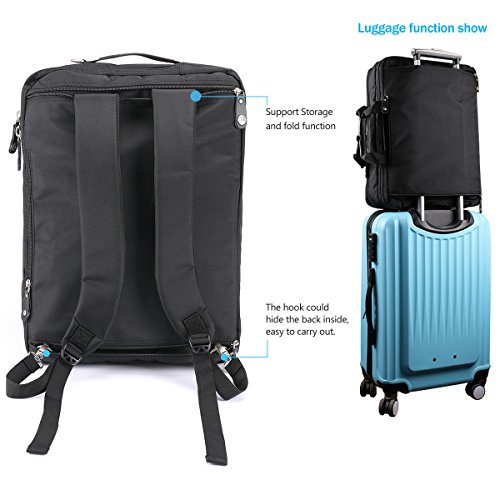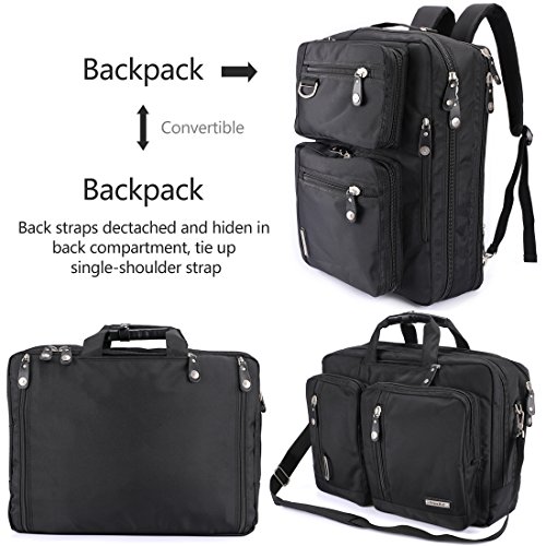 The item size:20 x 15 x 8 inches The laptop room size:18*13*2.5 inches,3-in-1 Multi-Purpose: Briefcase Transforms ,Sleek and versatile design, the bag is convertible for use as briefcase, messenger bag, or backpack depending on need and carrying preference.