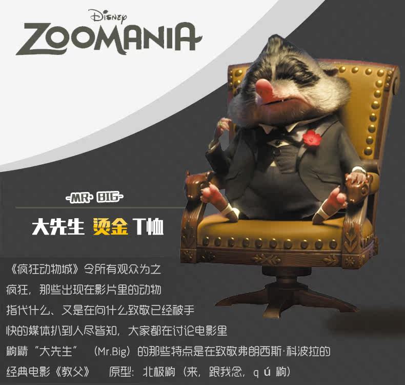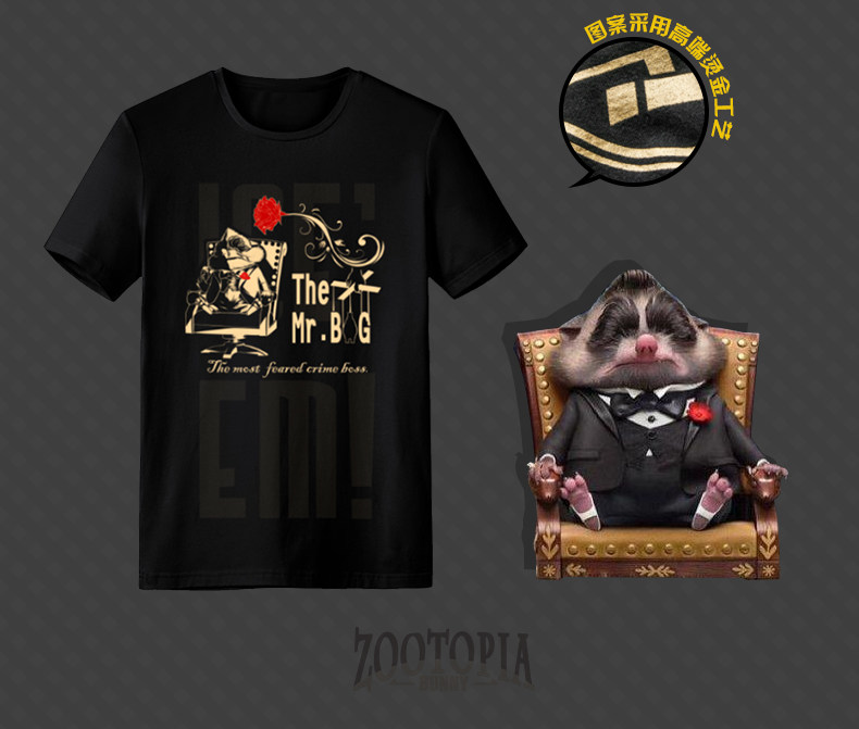 疯狂动物城电影动漫周边Mr.BIG烫金卡通短袖T恤纯棉夏