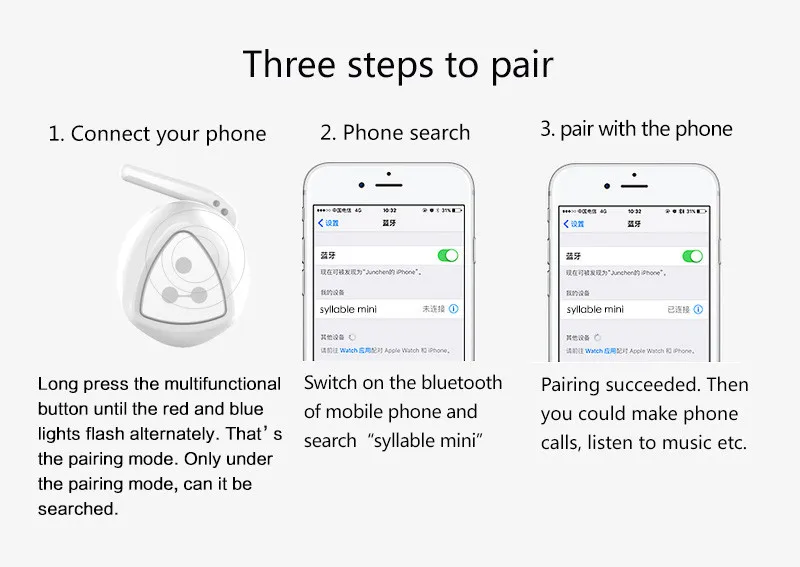 Function:Microphone, Supports music, Wireless Headphone, Portable, Bluetooth