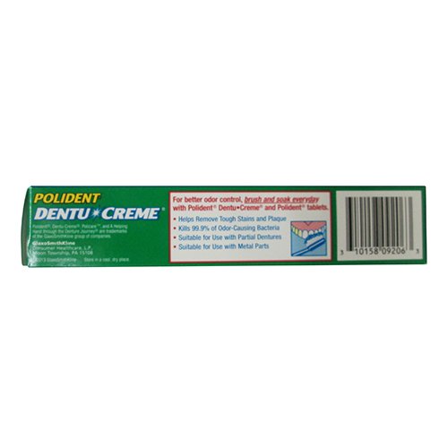 -. Binding : Health and Beauty -. Brand : Polident -. Feature : Kills 99.9% of Odor-Causing Bacteria / Helps Remove Tough Stains and Plaque / Suitable for Use with Partial Dentures / Suitable for Use with Metal Parts / Denture Cleanser Paste -. IsAdultProduct : 0 -. Label : Polident -. Manufacturer : Polident -. PackageQuantity : 1 -. ProductGroup : Health and Beauty -. ProductTypeName : HEALTH_PERSONAL_CARE -. Publisher : Polident -. Studio : Polident -. Title : Polident Dentu Creme, Triple Mint 3.9 oz (110 g) (Pack of 3)