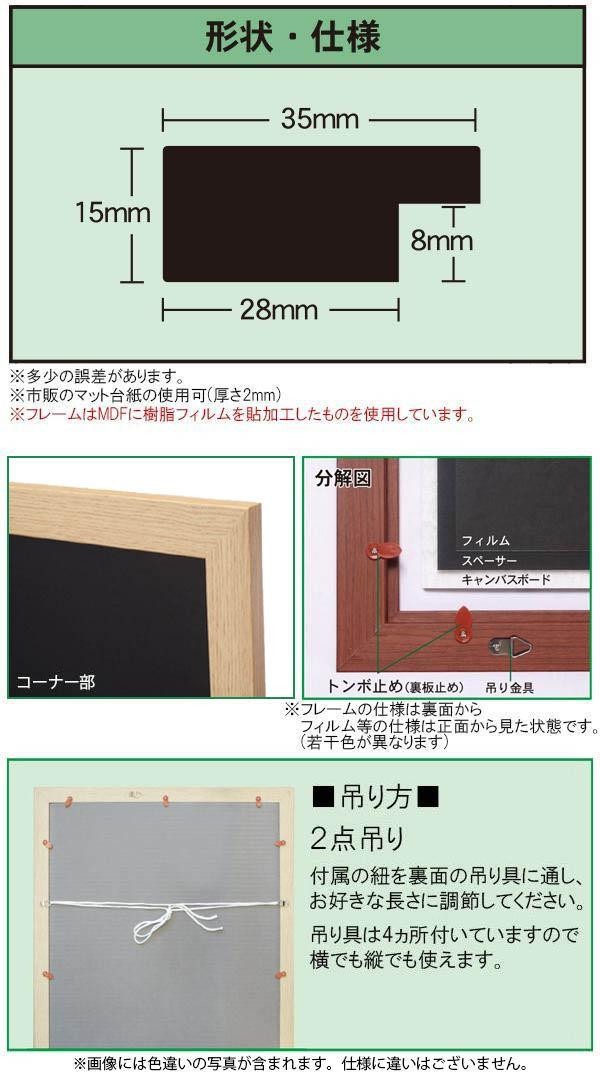 素材・材質フレーム:MDF樹脂フィルム貼加工、裏板:キャンバスボード、表面フィルム:PET