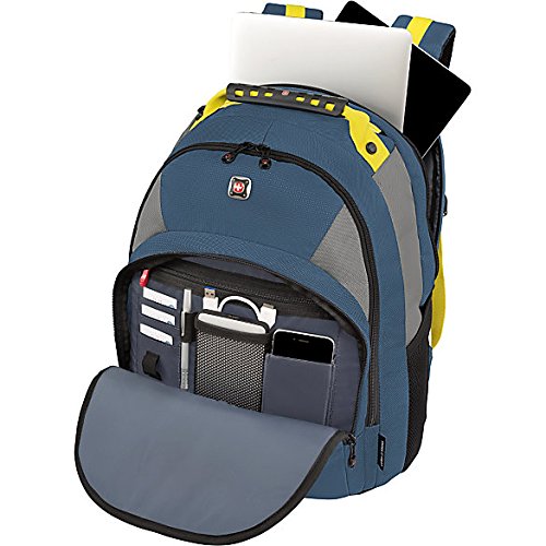 -. Binding : Misc. -. Brand : Swiss Gear -. Feature : Padded compartment protects most laptops up to 16". Neoprene pocket provides storage for a 10" tablet or e-reader. / CaseBase Stabilizing Platform helps keep the bag upright while on the floor. Tip protection helps minimize the risk of damage to your electronic devices. / Comfort-fit shoulder straps contour to your shoulders and feature extra padding. / Ergonomic grab handle gives easy transport options. / Air-flow back padding helps promote continuous air circulation to add comfort during long walks. -. IsAutographed : 0 -. IsMemorabilia : 0 -. Label : Victorinox Swiss Army, Inc -. Manufacturer : Victorinox Swiss Army, Inc -. ProductGroup : Sports -. ProductTypeName : SPORTING_GOODS -. Publisher : Victorinox Swiss Army, Inc -. Studio : Victorinox Swiss Army, Inc -. Title : SwissGear® Pulsar Backpack With 16" Padded Laptop Pocket