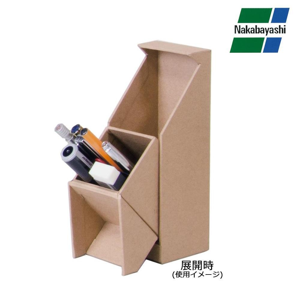 使わないときに中身が見えないすっきりとしたペンスタンドです。展開すると40度にキープされて取り出し易くなっています。 |