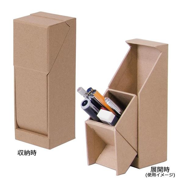 | 使わないときに中身が見えないすっきりとしたペンスタンドです。展開すると40度にキープされて取り出し易くなっています。 |