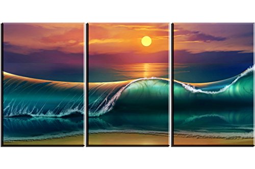 -. Title : Piy Painting Love Sea S771, 3 Piece Canvas Wall Art, Framed and Ready to Hang P.R.Ints Artwork, Oil Painting HD Reproduction Home Decoration (Green & Yellow)