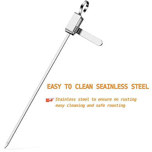 - 14.7 INCH LONG FLAT SKEWERS - The FLAT design extra anti-scald slide handle, keep your food fixed on the skewers without falling off. 14.7-INCH LONG BLADE offers enough space to create manageable, individual portions. Be sure to wear protective grilling gloves when touching the metal handle as it does get hot.