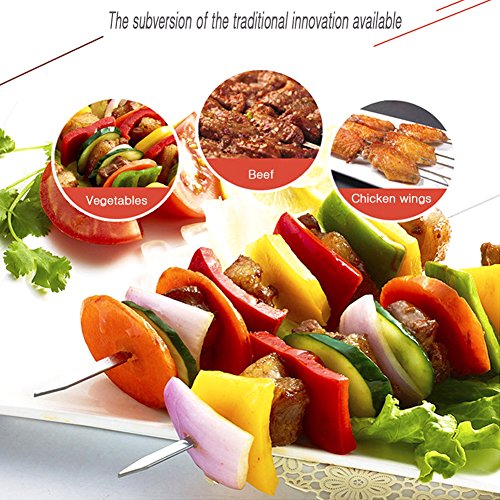 - PREMIUM QUALITY -Made from SUPERIOR QUALITY, FOOD-SAFE STAINLESS STEEL, these grilling skewers are durable, reusable, and corrosion-resistant. Unlike wood and bamboo skewers, they don't require soaking, and they won't burn to a cinder during cooking.