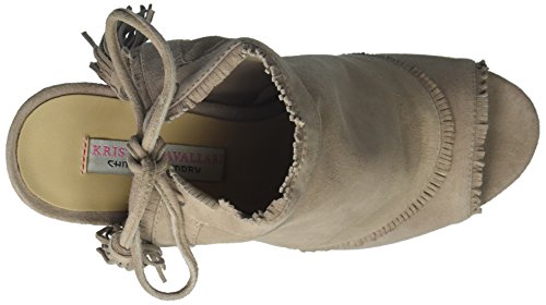 Product DescriptionPeep toe wedge sandal with ankle wrap, stacked wedge, and fringe/tassle detail0