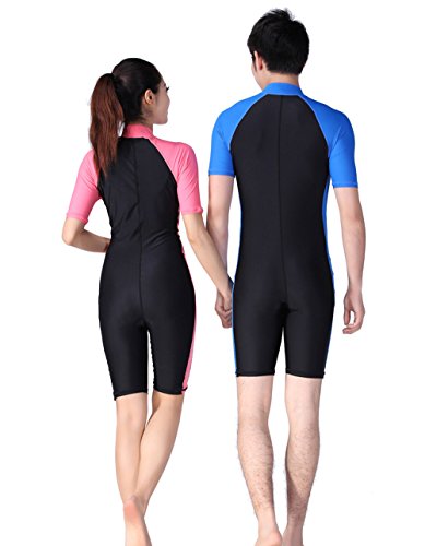 A Point Plus Size Short Sleeves Diving Suit UPF 50+ One-piece Surf Swim Wet Suit (men's blue, XL)