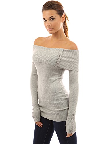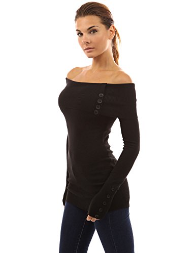 Product DescriptionOff Shoulder Buttons Long Sleeve Tunic Jumper. Model in pictures is 5 feet 8 inches (173cm) tall wearing size S.0
