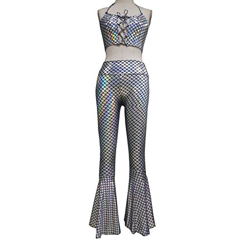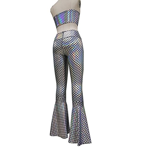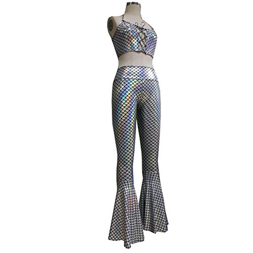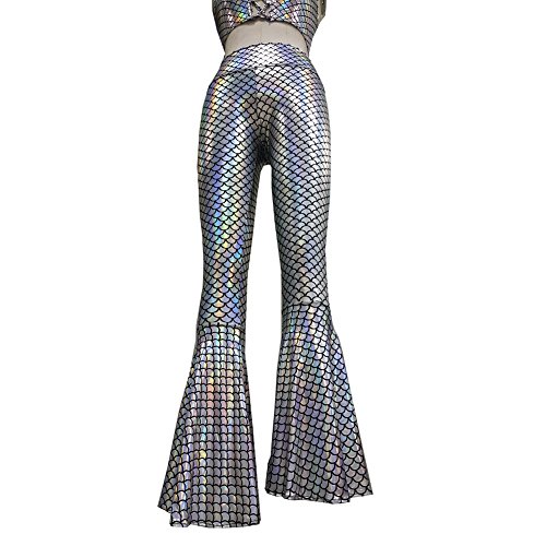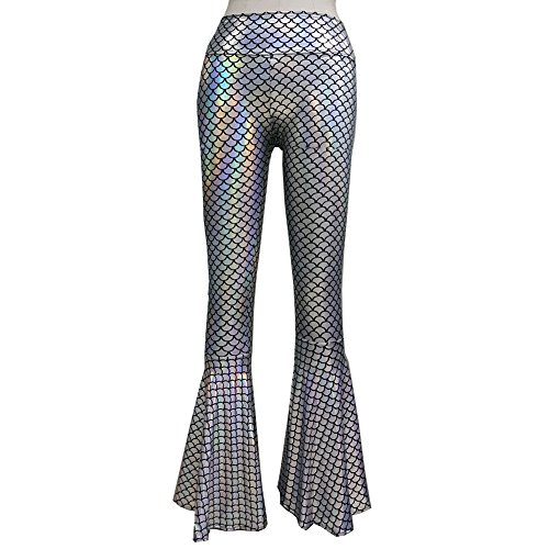 -. Title : Pinda Boho Hippie Holographic Mermaid Scale High Waisted Wide Leg Long Yoga Bell Bottom Pants Leggings