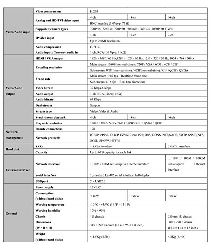 CMS and web-based remote monitoring software. Up to 1080P HDMI and 1920 x 1024 VGA Output Resolution.