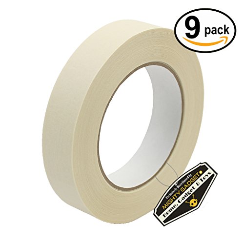 9 Rolls of Mighty Gadget (R) General Purpose Masking Tape for Production Painting - Natural Color Color (1 in. x 60 yards)