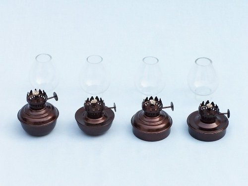 Hampton Nautical Antique Copper Table Oil Lamp, 5", Set of 4, Copper