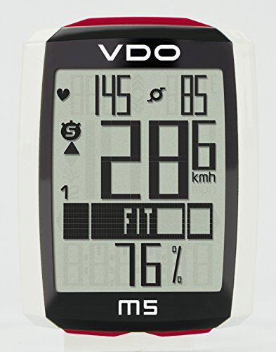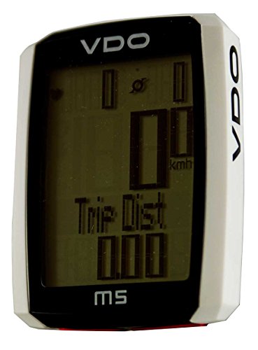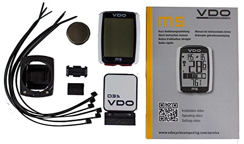 Studio : VDO Publisher : VDO Binding : Misc. Product Description the vdo m5 wireless cycling computer 2016 is a perfect tool for road bike and mtb, thanks to its many functions and dynamism. this model is a 3 in 1 with option to pulse and cadence that has a large screen and all of the essential functions that allow you to make a detailed monitoring of your training. once you return to move after the break, the vdo m5 has an automatic start function. the automatic start function is activated from a motion sensor and only with a small movement of the handlebars out of standby mode. this odometer is suitable for pulse functions but you need chest ribbon vdo. sensor data transmission is performed with the cordless d3 digital wireless transmission system that includes features on speed, pulse and cadence. to develop this series of devices, the brand has developed an operational structure of simple operation for user, grouping most of the functions the button base. the result is a range of computers which are practical, intuitive, easy to use and offer the renowned quality of the vdo brand, which has many years of experience in this sector. it incorporates numerous standard features, such as a notice of battery low the computer, retention of data when changing the battery, a backlit screen, a start/stop function automatic with sensor movement, a suspended mode, text on screen full in six languages, different applications depending on the function button and a simple navigation menu. features: -suitable for road and mtb. -battery type: cr2032. -start/stop automatic: yes. bike functions: -current speed. -daily tour. -travel time. -average speed. -maximum speed. -partial timer (manual stopwatch only counting during walking). -counter of distance and part-time (count the distance at the part-time). -roadbook, 2nd daily distance counter counter, count towards forward/reverse, adjustable. -clock (12/24 mode h with am/pm). -current temperature. -total distance bike 1 / bike 2 / total. -total travel time bike 0