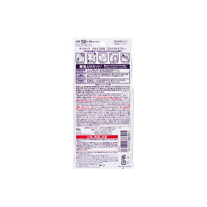 원본상품명: KOSE コ?セ? サンカット 日?け止め 透明スプレ? ピュアシャボン(SPF50+ PA++++) 50g