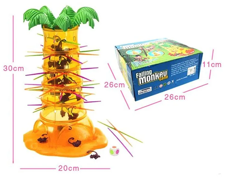 - Playing Method: first dished dice , then from tree top most arbitrary decimation with dice adaxially same color stick . if the monkey from the tree drop down , the monkey is yours, whose monkey is least, who is the winner.?