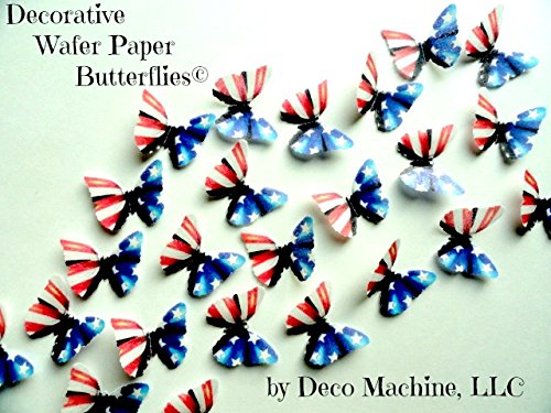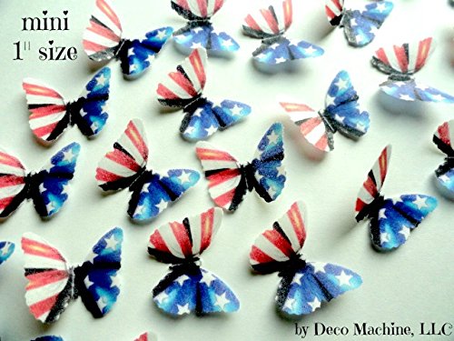 24 Red White & Blue American Flag Print Mini Decorative Wafer Paper Butterflies© 1" Pre Cut Cake Decorations Fourth 4th of July
